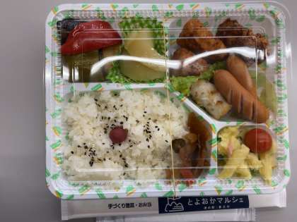 豊岡マルシェでお弁当を食べています。