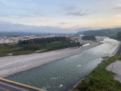飯田市、3日目の朝、6時現在、天候は晴れ、気温15度です。昨夜の関東地方の地震の影響は特にありません。予定通り、今日の16時頃に帰校、16時30分ごろに解散予定です。