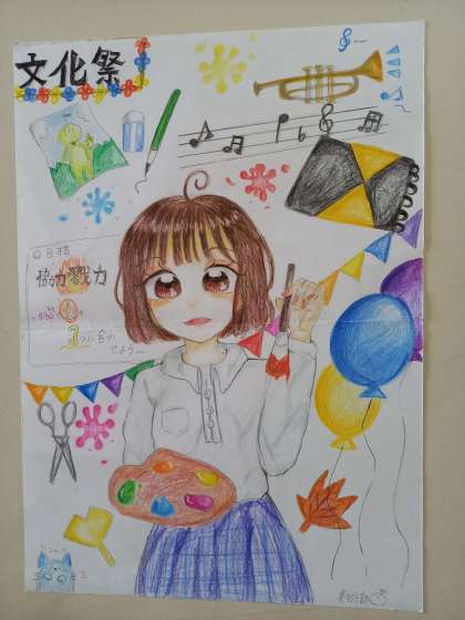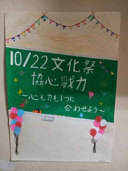 文化祭まであと1週間となりました。校内には、美術部が作成したポスターが貼られ、文化祭気分を盛り上げてくれています。