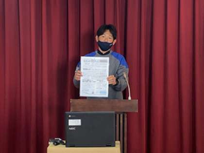 教頭先生の話に続いて生徒指導主事より、本日配布する「生活だより」についてお話がありました。深夜・早朝の出歩き、校区外へ遊びに行くことによるトラブルが最近見られるようになってきました。外出の際は、「誰と」・「どこへ」・「何時から何時まで」といった基本的なことを必ずお家の方に伝えて出かけるようにしてください。