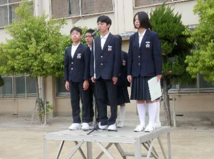 連休明けの全校集会となったため、体調を崩す生徒はいないか気にはなりましたが、今朝は、比較的涼しく快適に集会をすることができました。ただ、時間に少し遅れて登校する生徒がいたのが残念です。次回は、遅れないように気をつけてください。