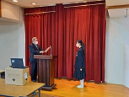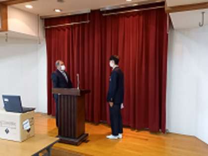 本日の全校集会では、後期生徒会役員・学級役員の認証式が行われました。