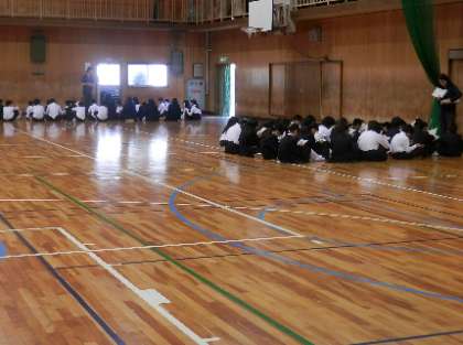 1年生では、5限に体育館で、一泊移住の説明と係会議を行いました。6限には、体育館で1回目の体育祭の練習が始まりました。行進と整列練習を中心に行いました。