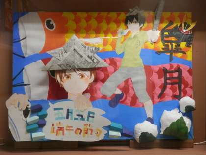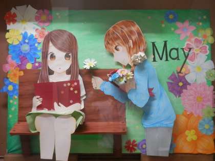 美術部が頑張って製作しているディスプレイが5月バージョンに入れ替わりました。
