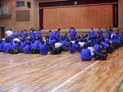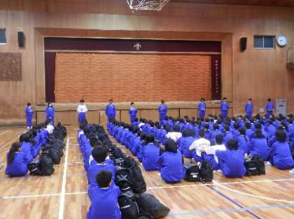 各学級の代表から一泊移住での学級目標について話がありました。↑