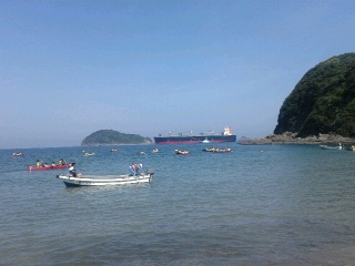 カヌーは、5人の呼吸が大切です。沖の巡視船に助けられるケースも・・・。本当に気持ちいい天候です。