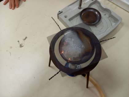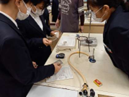 理科室で銅とマグネシウムの酸化実験が行われています。