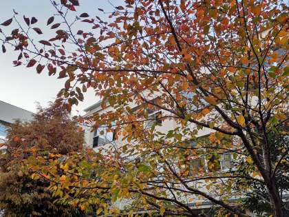 中庭の紅葉した桜の葉も少しずつ散りはじめ、冬の訪れを感じさせます。