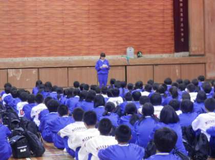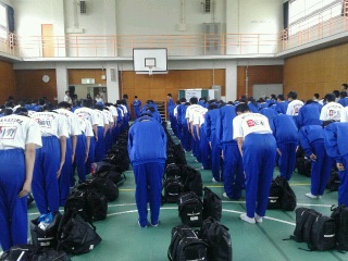 退所式「お世話になりありがとうございました」と学校到着後の解散式の様子です。たくさんの保護者の方に、お迎えに来ていただきありがとうございました。