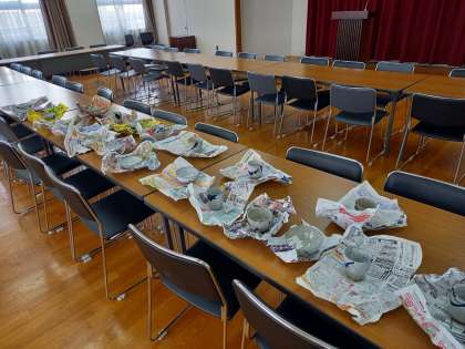 修学旅行先で製作した陶芸作品が学校に届きました。