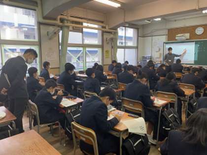 大阪市教育センターより学力向上推進事業の指導実践チームが来校されました。1年生数学科の授業を見学後、指導助言をいただきました。「わかりやすい授業づくり」に全校をあげて取り組んでいます。