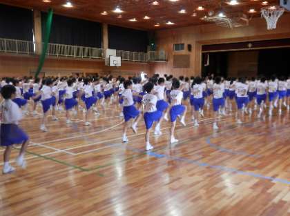 1年生は、体育館で学年全体の行進練習を行いました。