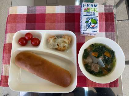 マリネ:「マリネ」という言葉は、フランス語で「浸す」という意味です。マリネとは、肉や魚に、たまねぎなどの野菜や油、酢などで作ったマリネソースをからませた料理のことです。油で揚げたものに、マリネソースをかけるとさっぱりした味になります。今日の給食では、たまねぎをオリーブ油でいため、砂糖、塩、米酢、りんご酢、オリーブ油、ワインで味つけしたマリネソースを、さけにからませた「さけのマリネ」が登場します。