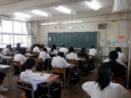 本日は、中間テスト1日目。全学年で、1限国語、2限社会、3限数学の3教科と2年生のみ4限を使って美術のテストを行いました。