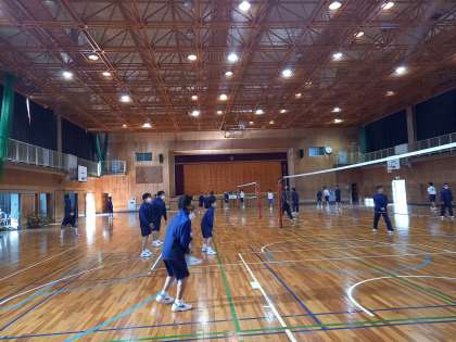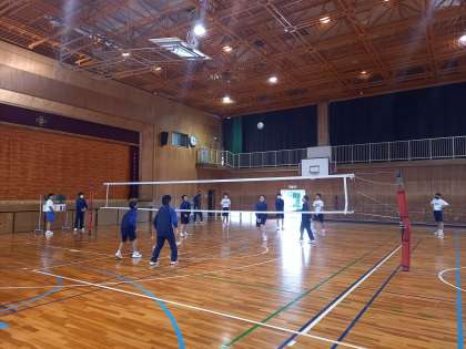 体育館でバレーボールに取り組んでいます。今日からゲーム形式の授業が始まりました。