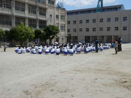 中間テストも2日目。テスト終了後には、体育祭の選手名簿合わせ(各種目、レースのコース確認等)を各学年ごとに集合し、グランドと体育館に分かれて行いました。