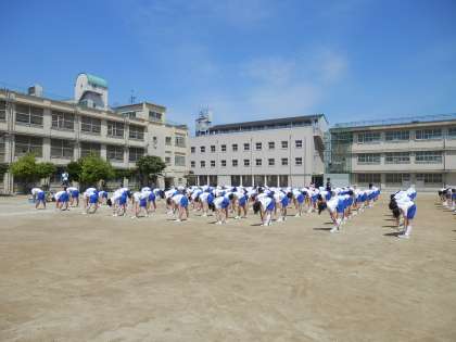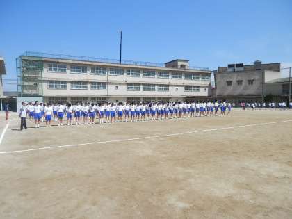 2年生は、ラジオ体操第1の練習と学年種目(40人41脚)の並び方の練習、3年生は、集団行動の練習が行われました。暑い日でしたが、両学年共に先生の指示に従い真剣に取り組んでいる姿が印象的でした。体育祭当日6/5(金)まで残り少ない日程となりましたが、がんばりましょう!