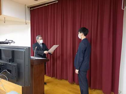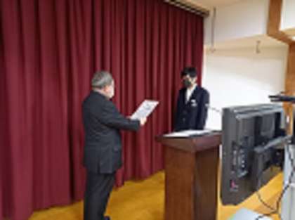 12月末に行われた第1支部バドミントン大会2年生の部シングルスにおいて、本校男子バドミントン部員が優勝、第3位を獲得しました。本日の始業式において表彰状を授与しました。