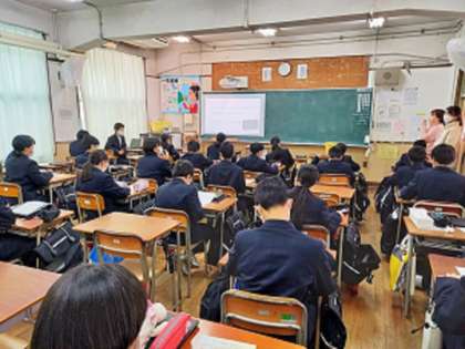 5限1年生は、『歯と口の健康教室』を各クラスで実施しました。保健食育委員会が制作したむし歯や歯周病、歯の正しい磨き方について説明した動画を視聴、健康クイズを解きながら、楽しく学習しました。最後に、1人1台学習者端末を使い、アンケート回答をして、学習のまとめをしました。