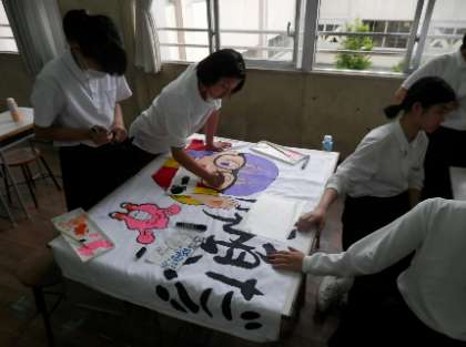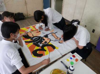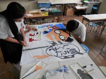 体育祭の応援旗づくりに、3年生も力が入ってきました。みんなの気持ちを一つにする旗づくり。いよいよ本番ですね。