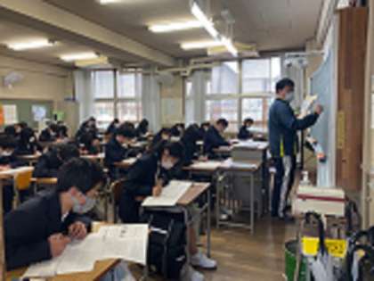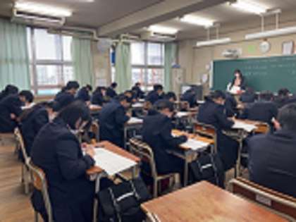 みんな真剣に問題に向き合っています。明日まで1・2年生は学年末テストです。1・2年生は、明日から部活動が始まります。参加する生徒は、13時30分以降に再登校してください。