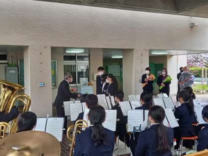 今までお世話になった先生方との別れを惜しみました。校長先生をはじめ、美津島中学校に関わった多くの教職員のみなさま、今後もご活躍ください。