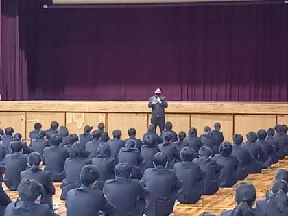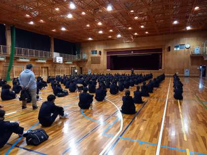3年生の学年集会が開かれました。学年主任の先生からは、意識して挨拶をしっかりしましょう。時間に余裕をもって行動しましょうとお話がありました。
