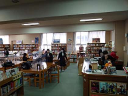 美津島中学校では、昼休みと放課後に図書館開放を行っています。図書館には、たくさんのいろんな分野の本があり、みんなが興味を持つ本が必ずあります。ぜひ図書館に来てください。テスト前の放課後には、テスト勉強をする生徒の姿も見られます。