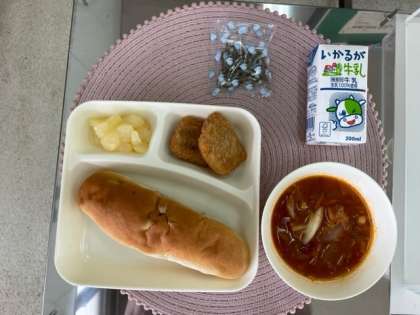 配膳台や机が汚れていると、不衛生なだけでなく、食中毒の原因にもなります。給食の時間の前後には配膳台をきれいに拭き、机の上には清潔なランチョンマットを敷きましょう。