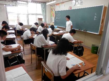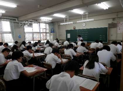 本日は、3年生が第2回実力テスト、1・2年生は、夏休み中の宿題等に関する課題テストを実施しました。1限から5限までのテスト攻めで、ずいぶん疲れた様子でした。