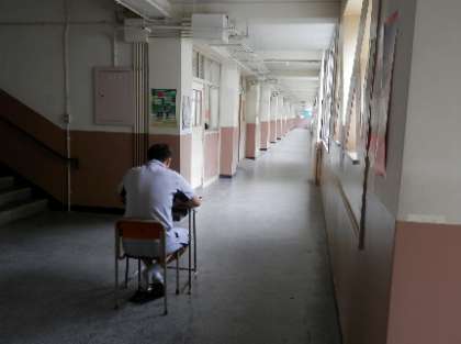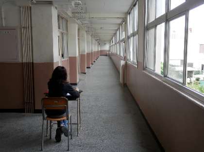 テストの時は、緊急時に備えて、廊下でも先生が監督として待機しています。