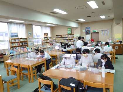 美津島中学校では放課後、図書館開放を行っています。17時までという短い時間ですが、好きな本を読んだり、家庭学習ノートや教科から出た課題プリントをやったりと過ごし方は人それぞれです。今は来週のテストに向けてテスト勉強をしている人が訪れています。テストが終わった後も、図書館開放は、ほぼ毎日やっていますのでぜひ足を運んでくださいね。