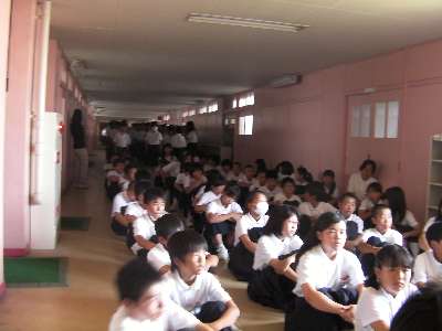 津波被害を想定して、校舎3階以上の場所へグランドから移動しました。