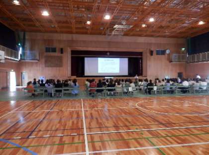 防災学習終了後、同じ体育館において、進路説明会を行いました。平成28年度の公立高等学校の入試制度の変更点等が主な内容となりましたが、評価、評定についての質問も出ました。絶対評価導入の初めての入試となるため、今後も様々な情報を提供していきますので、よろしくお願いいたします。
