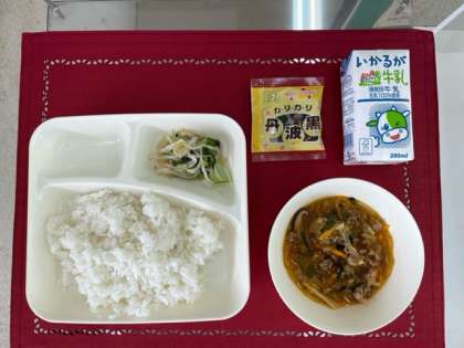 はるさめ:はるさめは、中国で昔から食べられてきた食品です。中国では、緑豆(りょくとう)という豆のでんぷんを原料に作られていますが、日本では、じゃがいもやさつまいものでんぷんから作られることが多いです。給食では、じゃがいものでんぷんから作られたはるさめを使っています。