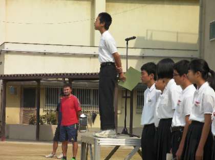 本日の全校集会では、先週開催された各専門委員会と生徒議会の報告が各代表から行われました。