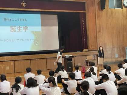 2年生は、5.6限の総合の時間に、メリー先生より、性教育のお話がありました。生命の誕生の復習と、身体の変化や心の変化の起こる中学生活の悩みを助けるお話をしていただきました。