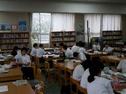 テスト前の自主学習会が今日から始まりました。放課後の図書室は、テスト勉強をする生徒でいっぱいです。学習ボランティアの先生にお世話になっています。