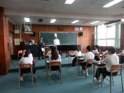 6月19日(金) 本校2年生が、5,6時間目総合の授業を利用して職業講話(12講座)を実施、各講座とも講師の方をお招きし、それぞれの職業についての専門的な講話をしていただきました。2年生の生徒たちも講師の方の話しを真剣に聞き、次年度(3年生)に実施予定である就労体験の事前学習に取り組んでいました。