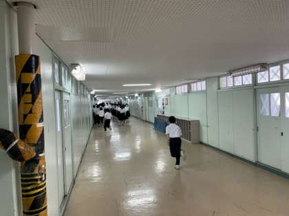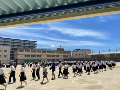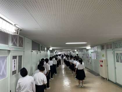 校長先生から津波の避難指示に従い、3Fに避難します。