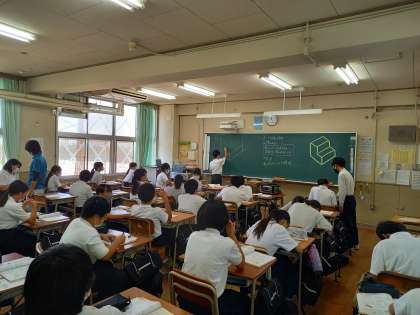 1年生の技術では、等角図の作成に挑戦しました。少しずつ難易度も上がっていきましたが、みんなとても上手に仕上げていました。