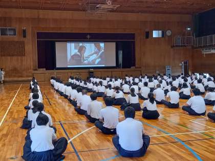 3年生は5·6時間目に体育館で性教育を行いました。1·2年生で学習した内容の復習、出産のDVDを見たあと、性感染症について学習しました。