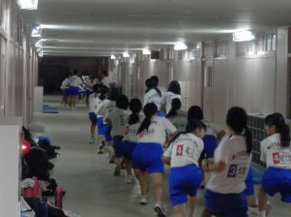 あいにくの天候で、運動場使用の部活動は、校舎内や雨のかからない場所で元気に活動していました。
