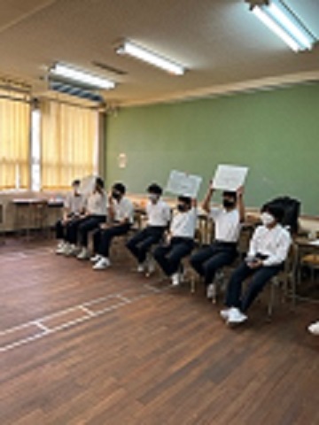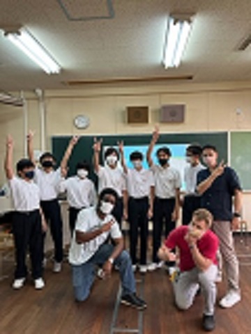 C-NETのラファエル先生、ブライアン先生、ジェミール先生が来られて、ゲームや難しいクイズにも挑戦しました。楽しく英語の勉強が出来ました。