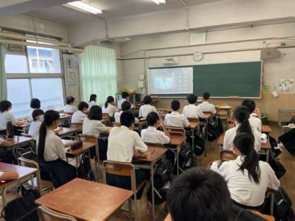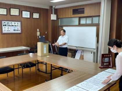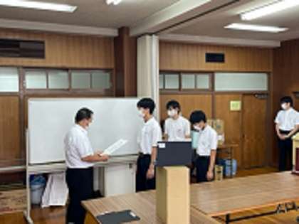 バドミントン部・ソフトテニス部・卓球部の表彰の後、校長先生、生徒指導主事、栄養教諭からお話がありました。