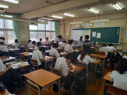 家庭科では、ボランティアの方にもご協力いただいて、縫い方の学習をしています。