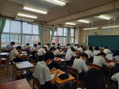 1年生の教室では、「心の天気」を入力しています。2年生は、「よむYOMUワークシート」に取り組んでいます。