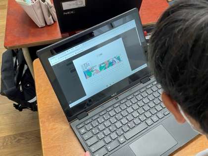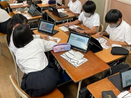 1年生は切り絵をパソコンを使って作成しています。