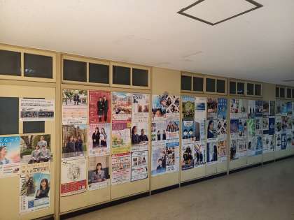 3年生校舎に続く本館2階理科室前には、高等学校や高等専修学校などのポスターがたくさん貼られています。9月〜11月には、私立高校に加え多くの公立高校でも学校説明会が開催されます。ぜひ、参加をしてください。わからないことや相談は、担任の先生や進路指導担当の先生に聞いてみてください。
