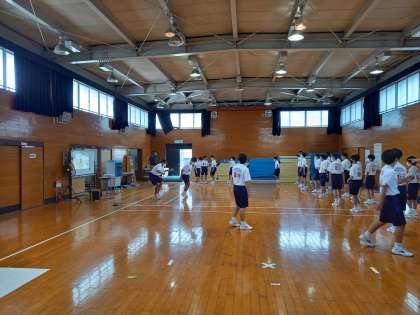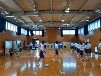 グランドの状態が悪かったので、今日は格技室で行いました。今までに撮った走り幅跳びの映像を見ながら、遠くに飛べるための歩幅や姿勢を確認し、ジャンプなどのトレーニングを行いました。